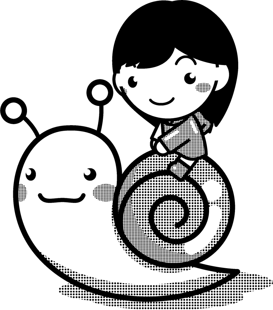 カタツムリに乗った女の子イラスト/青色