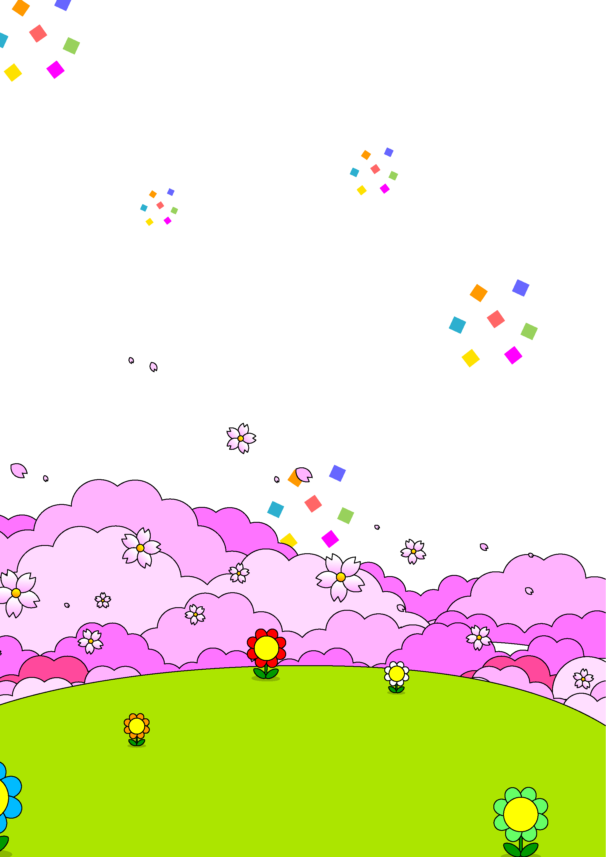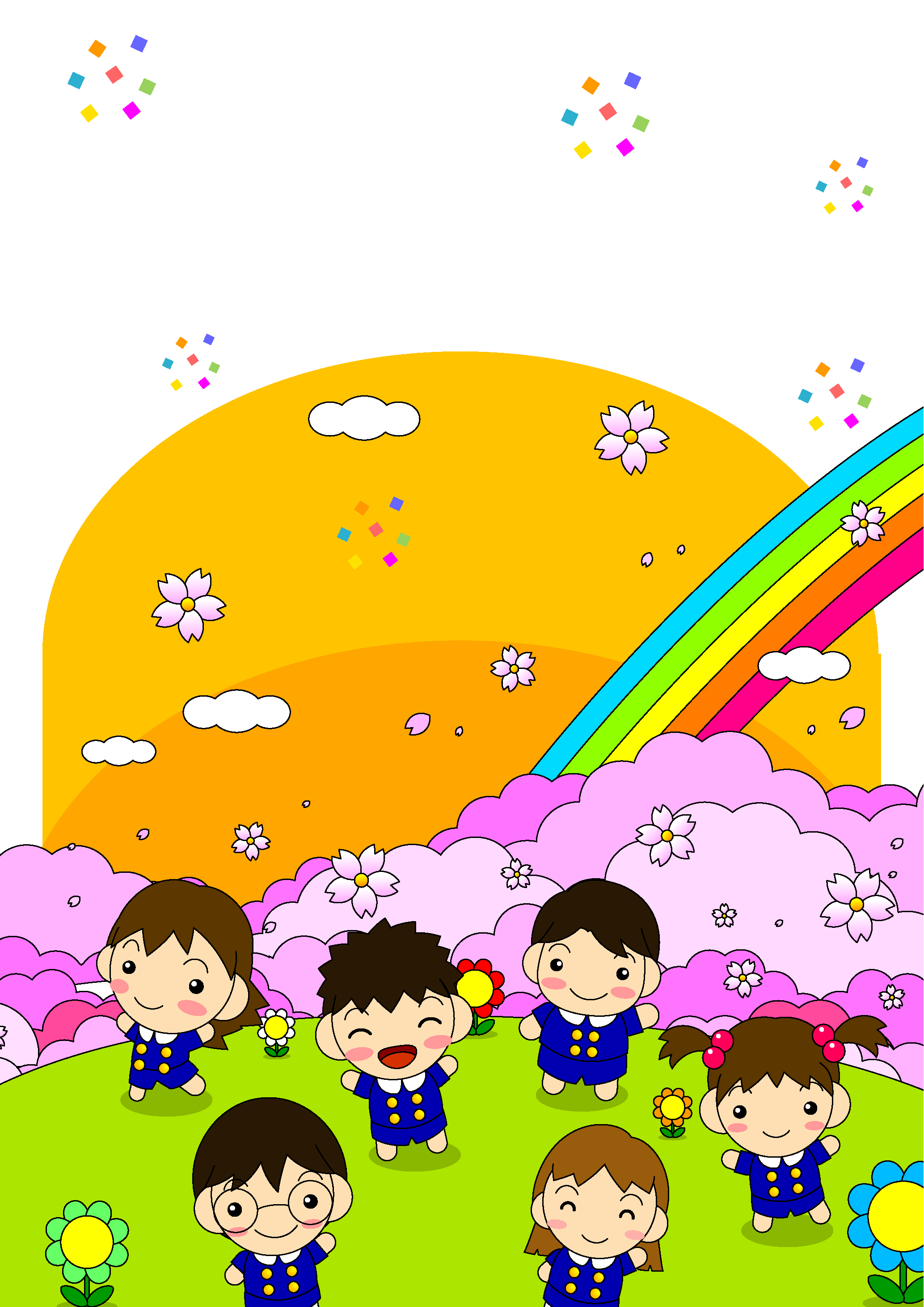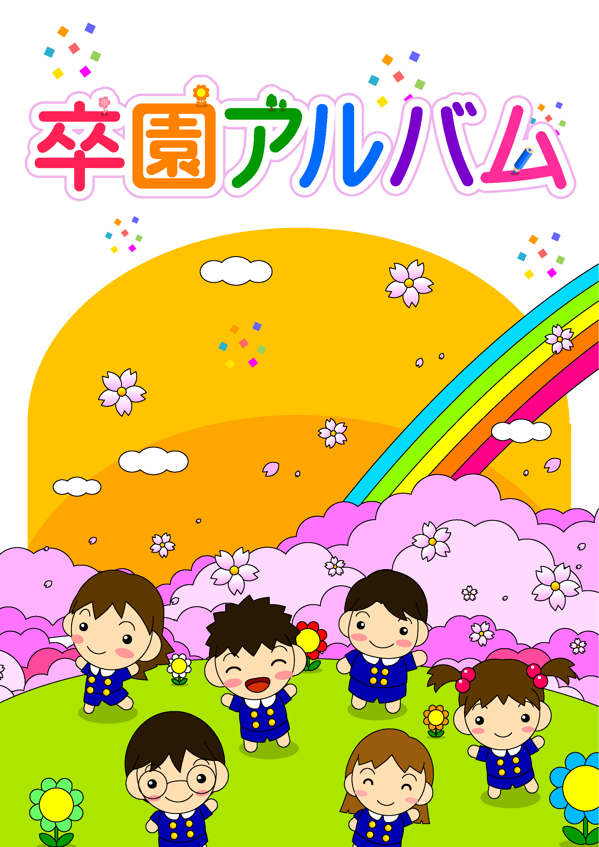 幼稚園の卒園アルバム。無料素材。かわいい幼稚園児と桜、虹