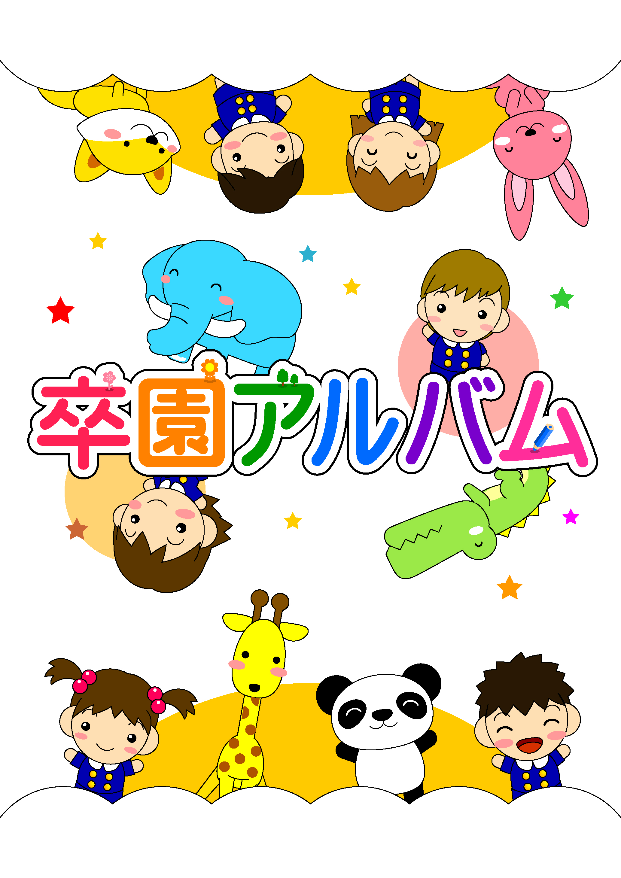 幼稚園の卒園アルバム。無料素材。動物達と幼稚園児