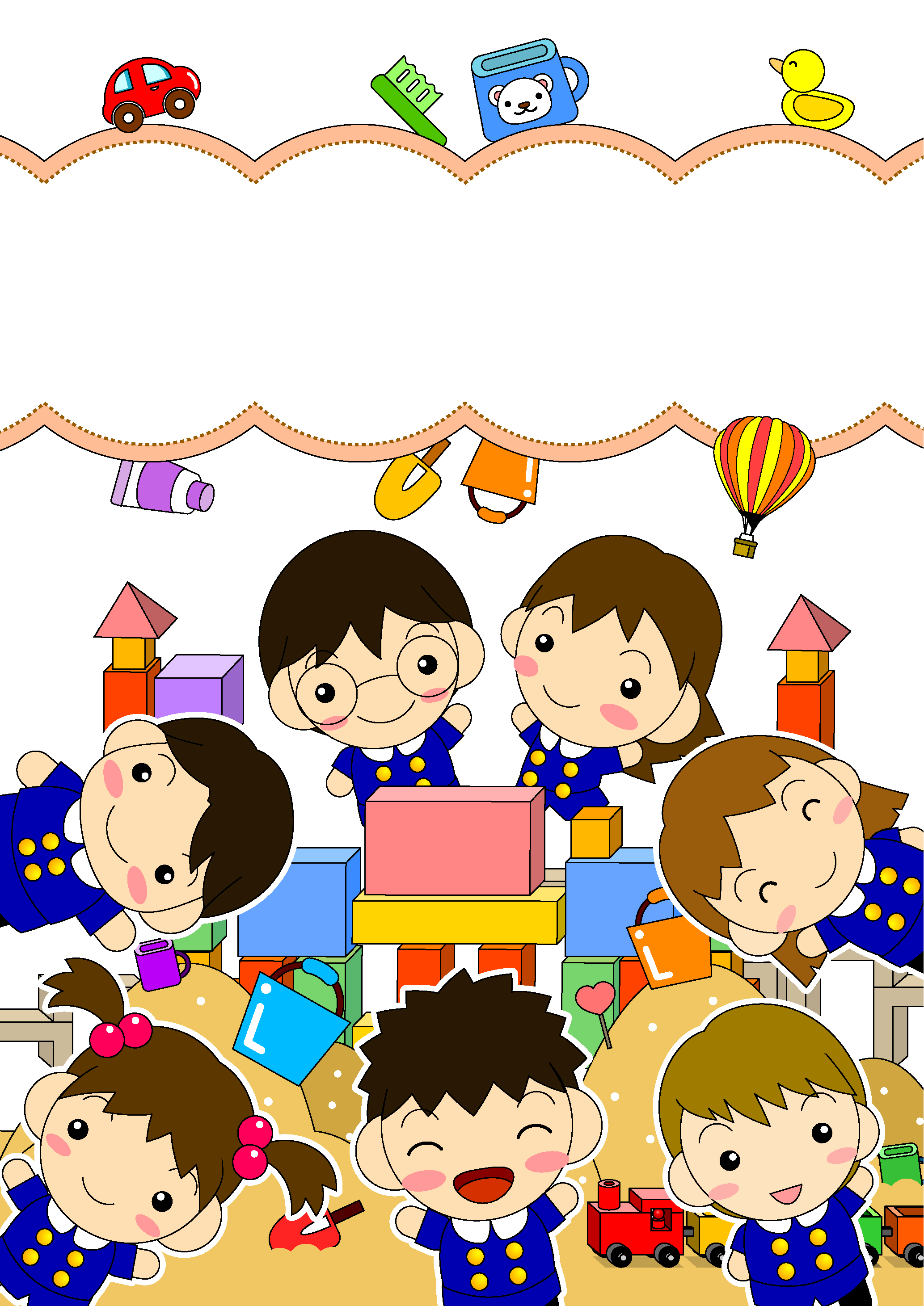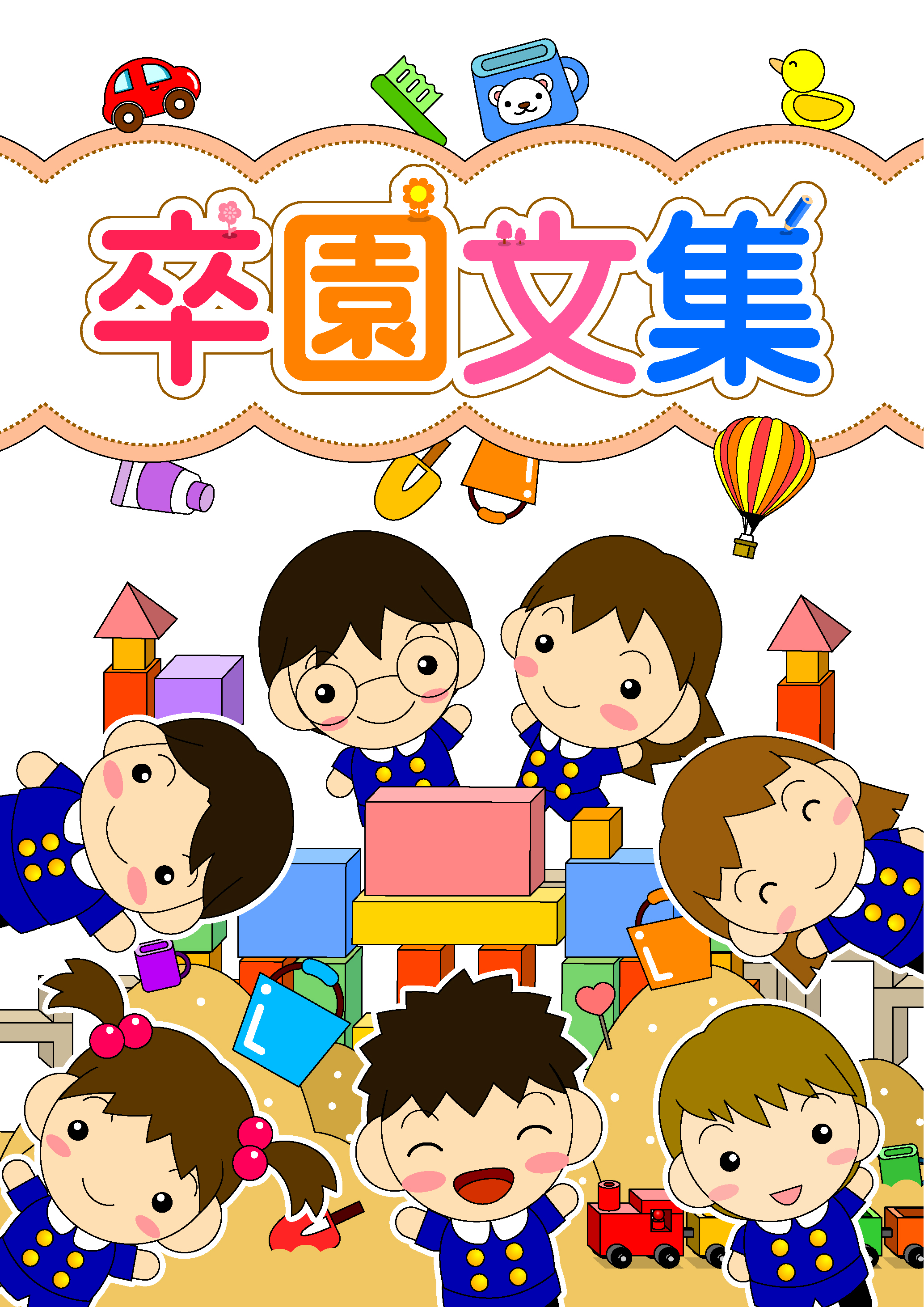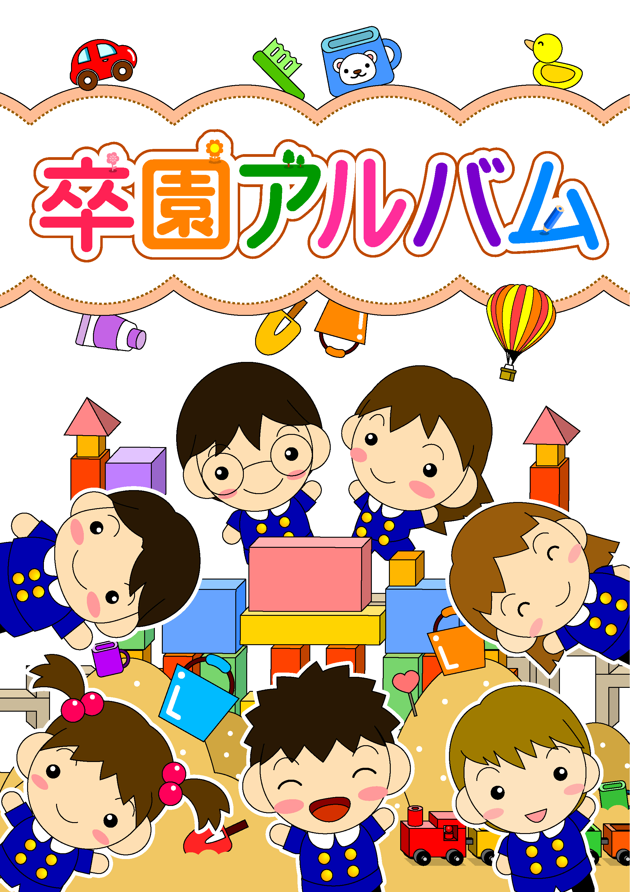 幼稚園の卒園アルバム。無料素材。みんなで記念にハイチーズ